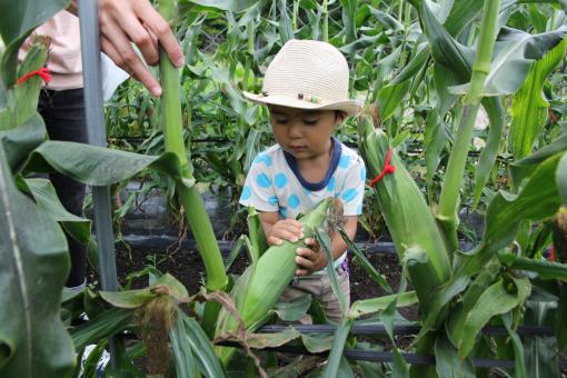 豊かな自然に囲まれた広大な農園で、野菜を植えてから収穫するまでの育てる楽しさ、難しさを体験できます。自分で収穫した新鮮な野菜をその場で味わう気軽な体験や、採れたてスイートコーンの炭火焼などひと手間加えた体験もあります。また、お子様向けのトラクター試乗も大人気。