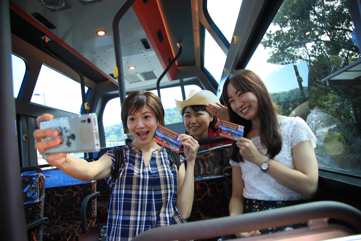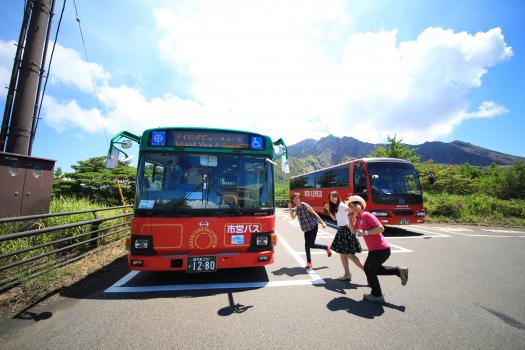 サクラジマアイランドビューバスに乗って、桜島の各所へ!景観を楽しみながら、ガイドが快適なバス巡りをお手伝いします。途中、火山のミニ博物館「桜島ビジターセンター」、現在上がれる最高地点の展望所「湯之平展望所」で下車して現地散策を楽しみます。