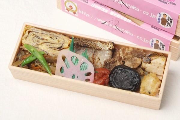 地産地消をテーマに、桜島の火山灰による灰干し製法で作った、県産の魚や豚、鶏、野菜を使ったおかずがぎっしり詰まった弁当です。