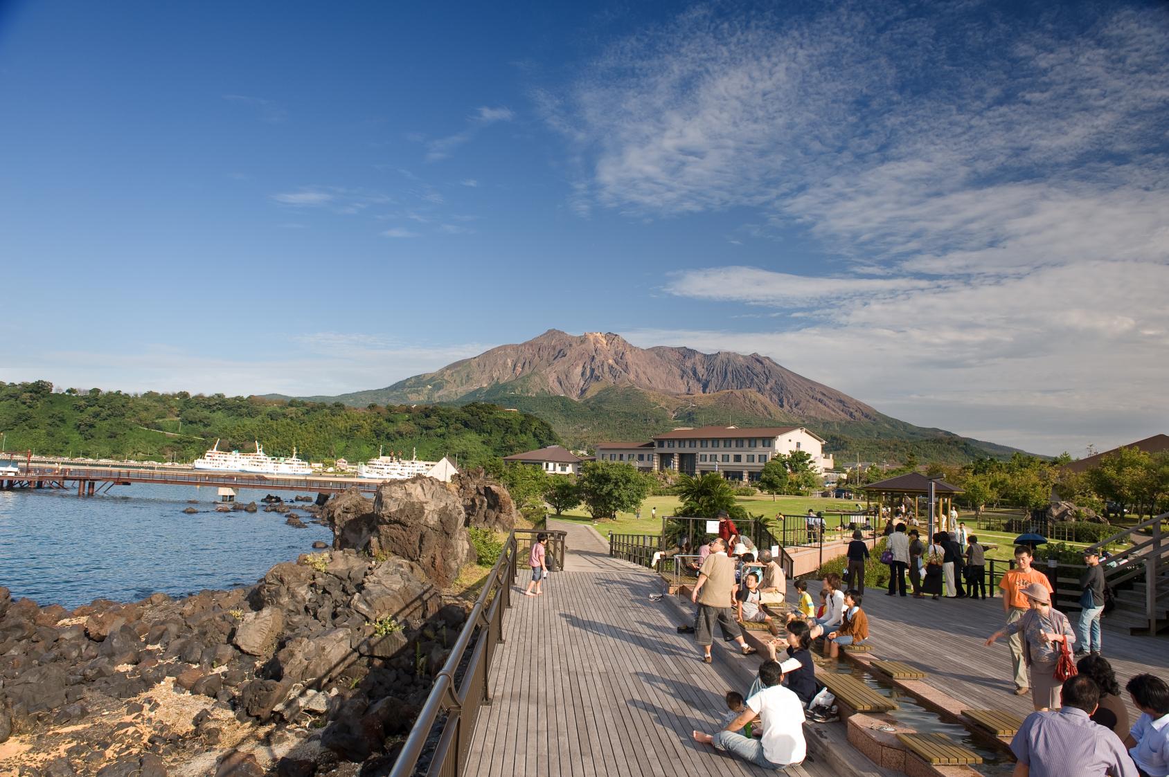 地下1000mから湧き出す天然温泉を利用した全長100mほどの長い足湯が自慢の公園。波が穏やかな錦江湾や後ろにそびえる桜島を眺めながらの足湯は、旅の疲れを癒やすのにもおすすめ。タオルは桜島ビジターセンターやレインボー桜島でも購入可能。
