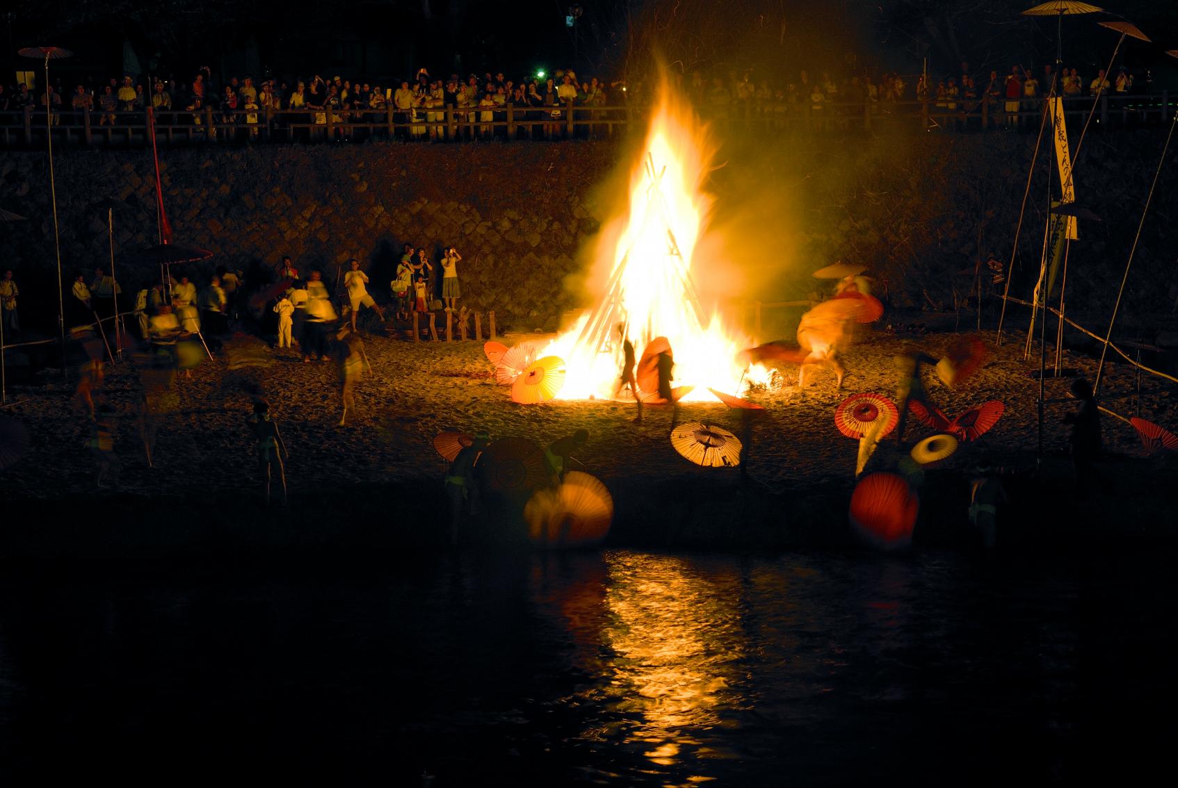 曽我どんの傘焼き夜空に和傘が燃え上がる、鹿児島の三大行事のひとつ