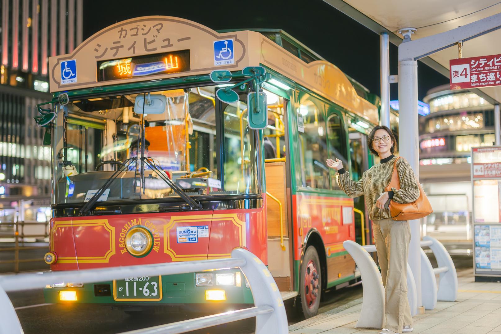 鹿児島中央駅東口ターミナル「東4」乗り場から出発。城山展望台では、眼下に広がる市街地のイルミネーションを堪能して。