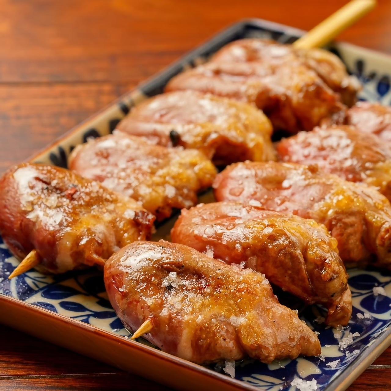 名物のとろレバー・ハツは、絶妙に焼き上げた、とろけるおいしさが評判。黒酢を使用したオリジナルのタレが自慢の「極み串」や、鹿児島産のリキュールを使ったサワーなど、串焼きをさっぱりとヘルシーに楽しめるアルコールも充実。