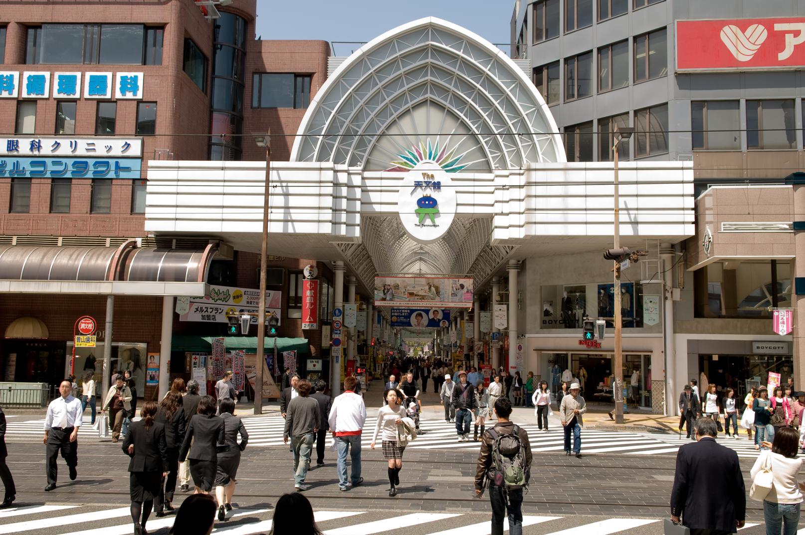 その特徴の一つがアーチ型のアーケード。桜島が噴火した際は火山灰をブロックし、雨の日も快適にショッピングやグルメを楽しむことができます。西郷隆盛銅像や照國神社、城山など、人気の観光スポットに近いことも大きなポイント。おすすめの街歩きエリアです。