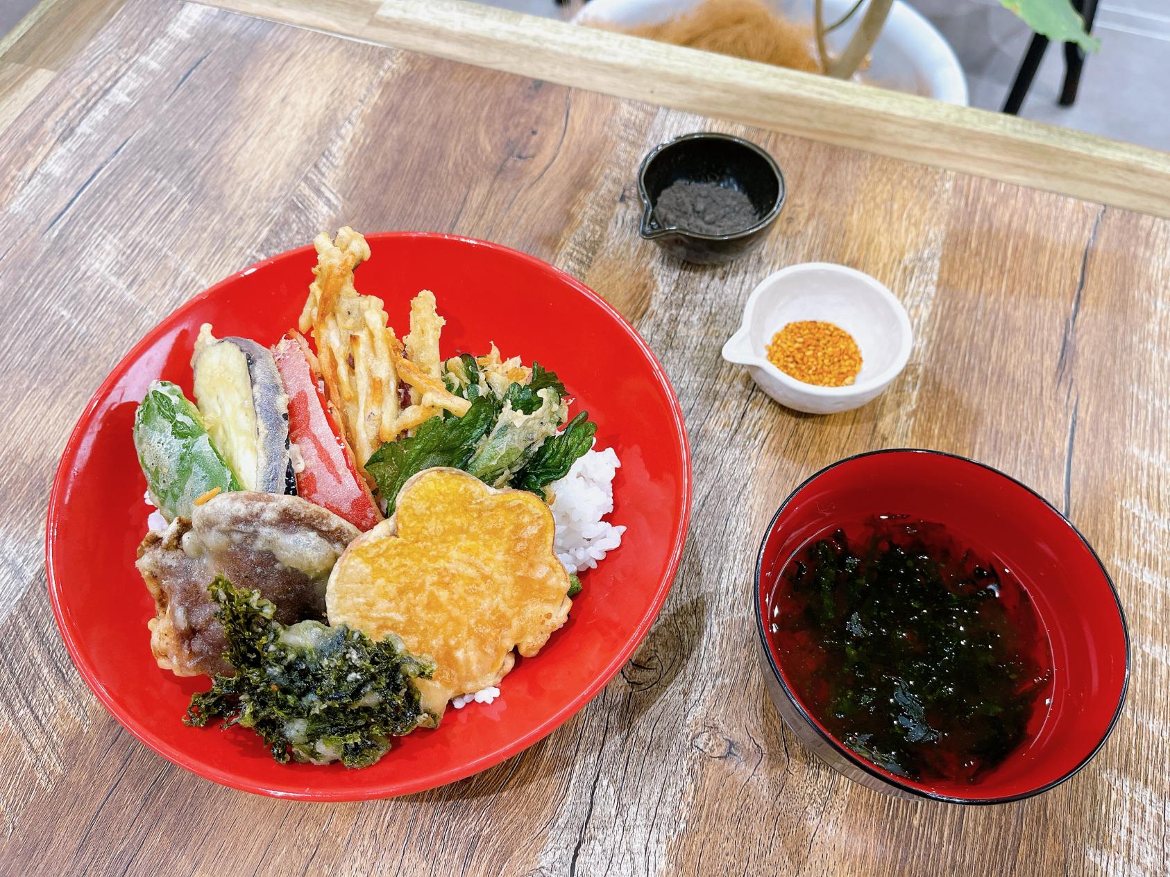 熟練の和食料理人が味の研究を重ね、鶏肉などの動物性原材料を一切使用せず、昆布出汁、胡麻、豆乳などで仕上げた「鹿児島の季節の彩り野菜と濃厚ごま豆乳の薬膳スープ膳」。奄美大島の郷土料理であり、おもてなしの食事として手間暇をかけてつくられている鶏飯と同じスタイルです。ご飯をトッピングで彩り、味わい深いスープをたっぷりかけて召し上がれ。
