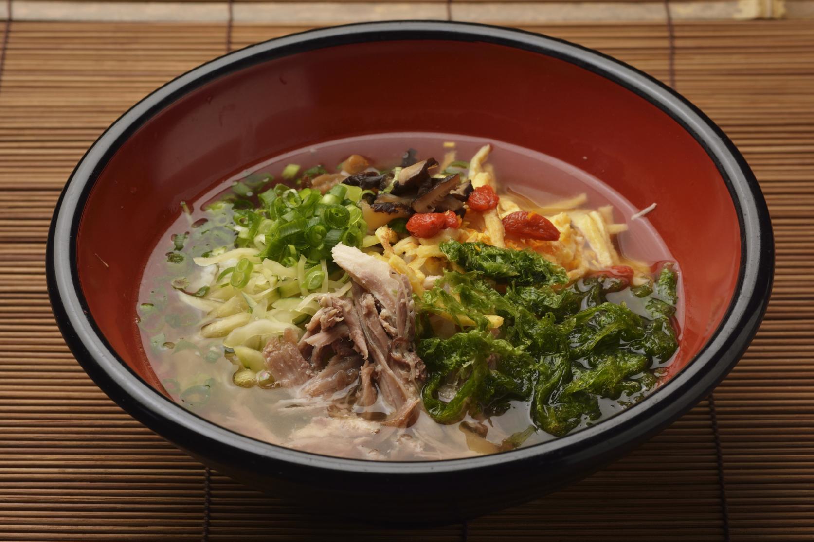 鹿児島県奄美大島を代表する料理のひとつ。好きな具材をトッピングして熱々の鶏ガラスープをかけてお茶漬けのようにサラサラと!