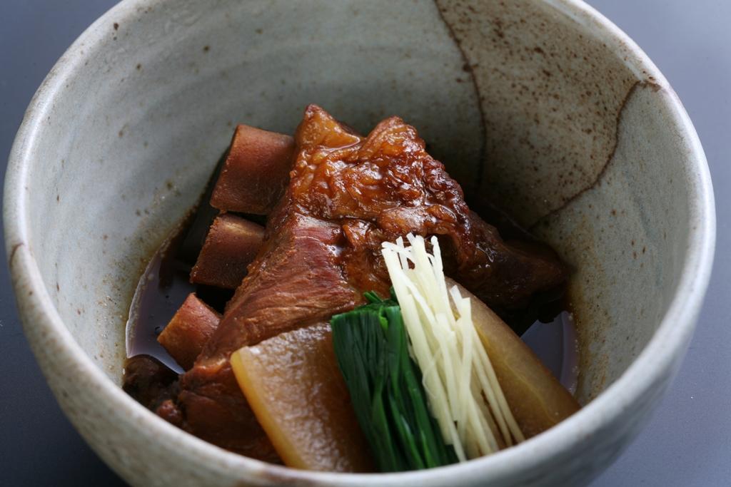 豚のバラ肉を甘辛く煮込んだ角煮。鹿児島の郷土料理では豚の骨付きあばら肉をつかうので「とんこつ」と呼ばれています。