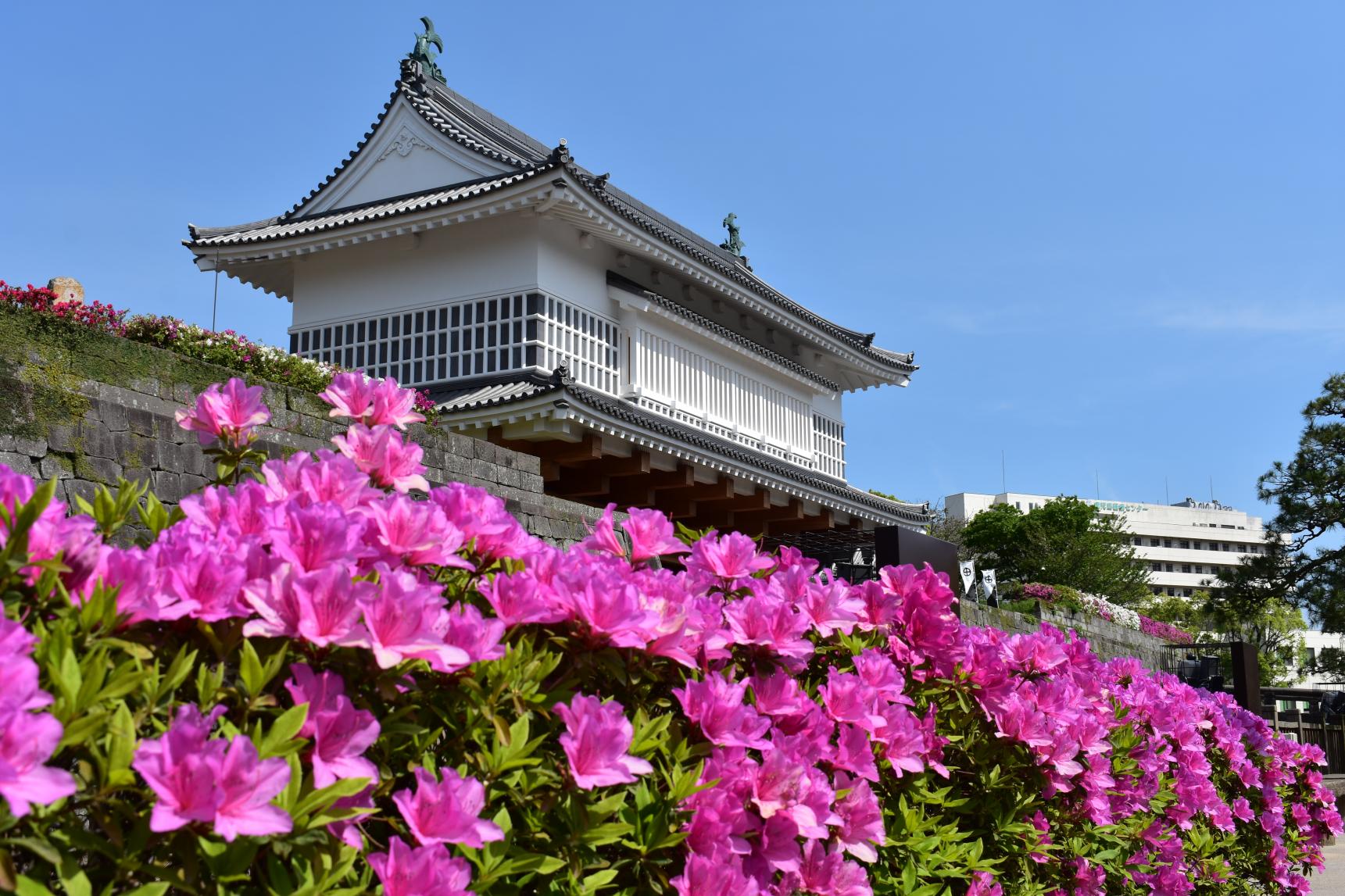 薩摩藩初代藩主・島津家久が築いた「鹿児島城(鶴丸城)」は、背後の山城と麓の居館からなる城。2020年に日本最大の城門として復元された「御楼門」をくぐれば美しい桜に出会えます。