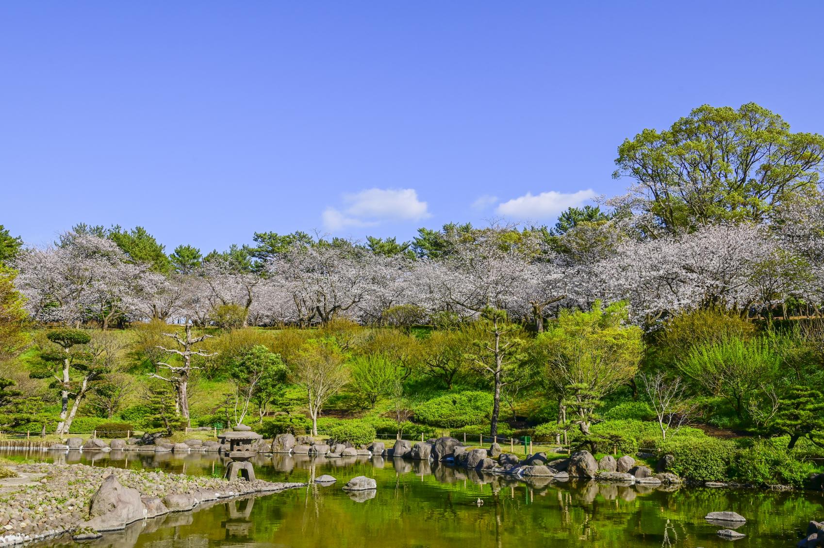 1658年、島津家19代光久が築いた別邸「仙巌園」。目の前に雄大な桜島と錦江湾を望める大名庭園です。こちらでは2月上旬から4月上旬にかけてカンヒザクラやガンタンザクラなど、約150本の桜が次々と咲き誇ります。