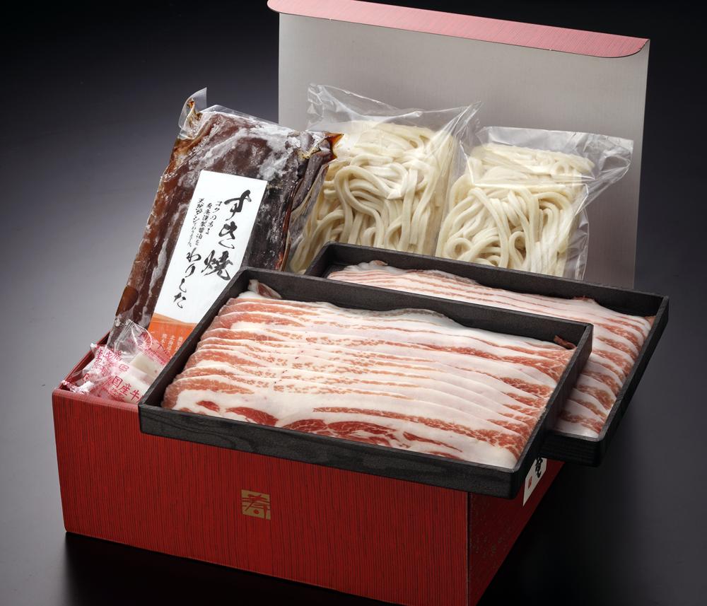 「黒豚料理寿庵(極上黒豚すき焼)」オンラインショップはこちら黒豚の旨みを心ゆくまで堪能できる黒豚すき焼き。甘辛いタレが黒豚に絡まり、濃い旨味が楽しめます。そのままでも美味しい黒豚すき焼きにうどんを加えて黒豚のだしがしみ込んだうどんすきにするのもまた絶品です。