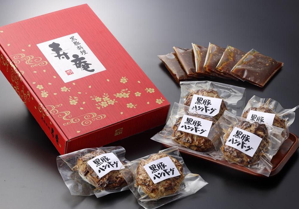 「黒豚料理寿庵(寿庵黒豚ハンバーグ)」オンラインショップはこちらお客様からご要望の多かった寿庵のジューシーな肉汁あふれる特製黒豚ハンバーグをそのままご家庭にお届けいたします。おろし玉ねぎをたっぷり使用した、香味豊かな寿庵の和風ソースをかけてお召し上がり下さい。