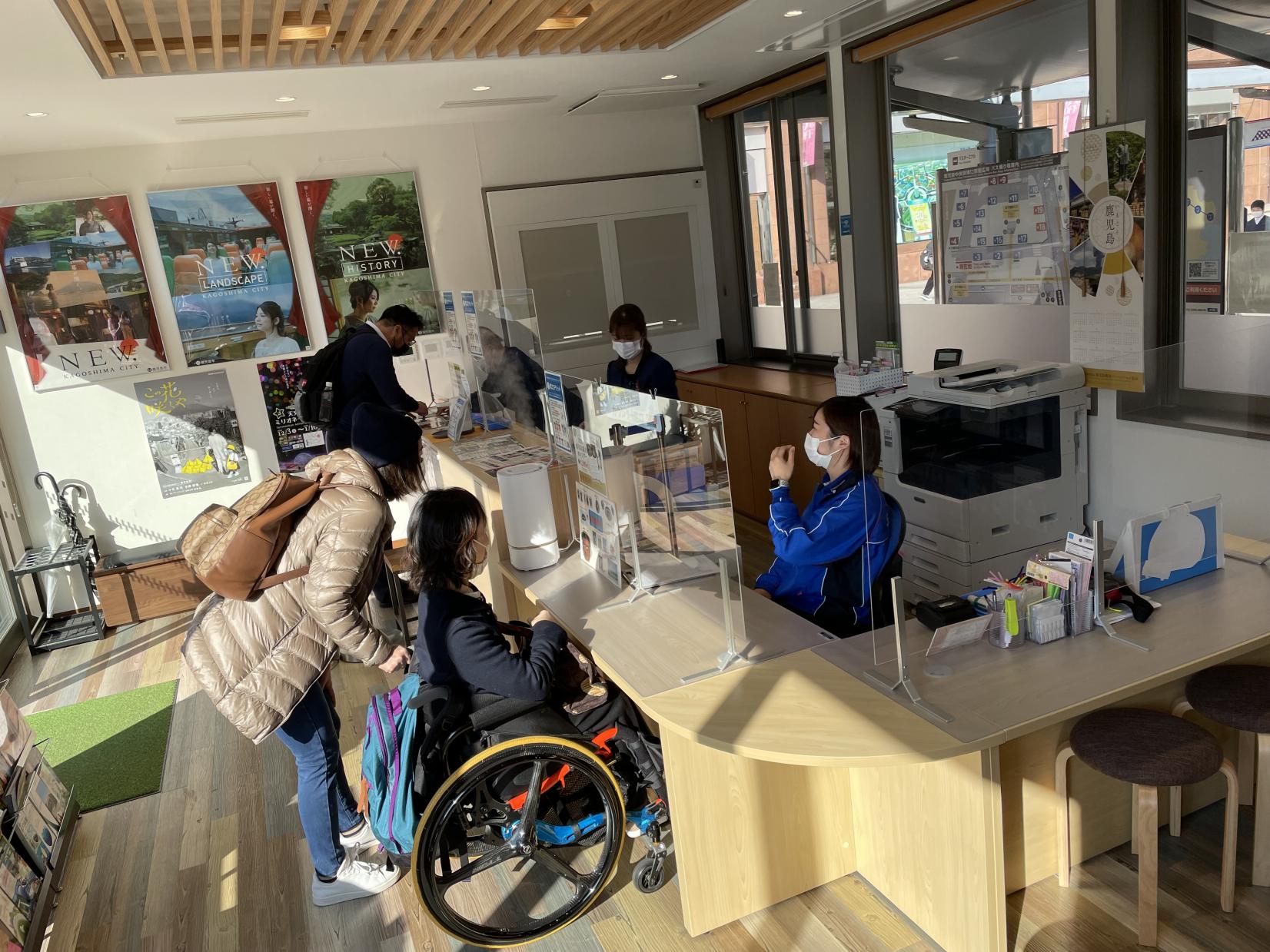 まずは、鹿児島中央駅東口駅前広場観光案内所で情報収集。観光案内に精通したスタッフが、見所を丁寧に教えてくれます。また、荷物預かりカウンターがあるので、手ぶらで旅もできますよ。無料の給水所もあり、マイボトルを持っていれば鹿児島のおいしい水をゲットできます。様々な方が使用しやすいよう、給水ボタンが複数箇所あるのもSDGs視点ですね。