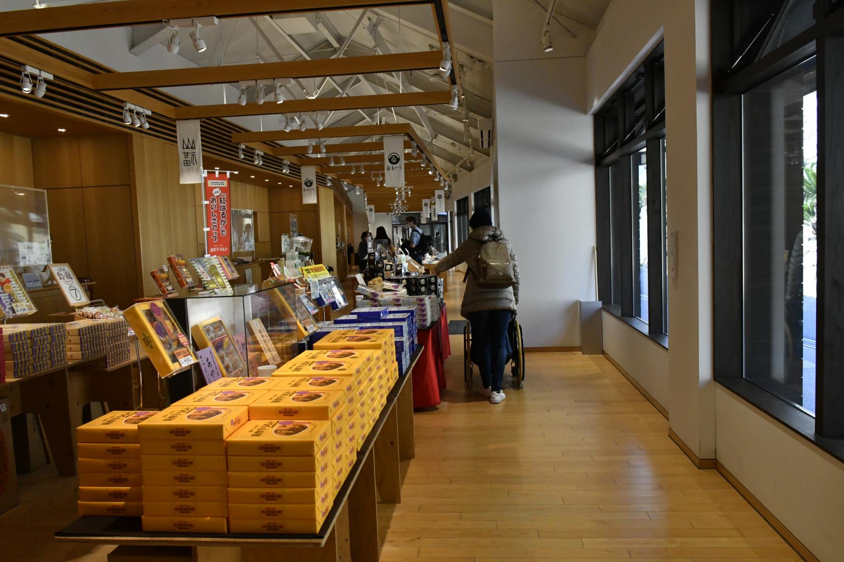 ランチは桜島の絶景が望める2階のレストラン。美しい器に盛られた鯛をあっさりとしゃぶしゃぶで。ゴマだれがよく合います。食事の後は、お土産屋さんを見て回ります。すると、どこからか甘く香ばしい香りが…じゃんぼもちは外せない!ということでオーダー。やわらかい一口サイズのお餅に仙巌園オリジナルの味噌味と優しい味のみたらしのたれがよく絡み、緑茶とベストマッチ。とってもゆっくりした時間を過ごすことができました。再びタクシーで10分程移動します。