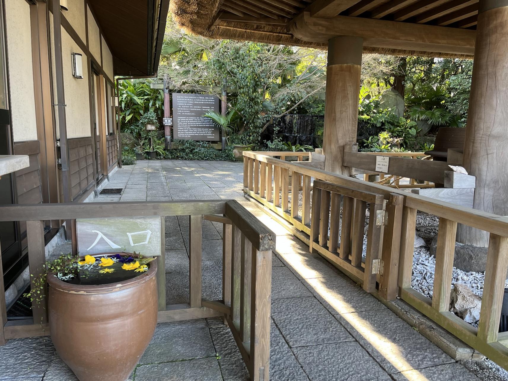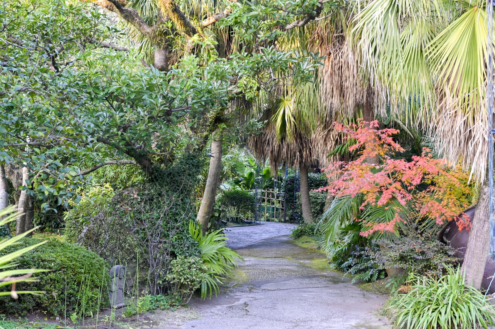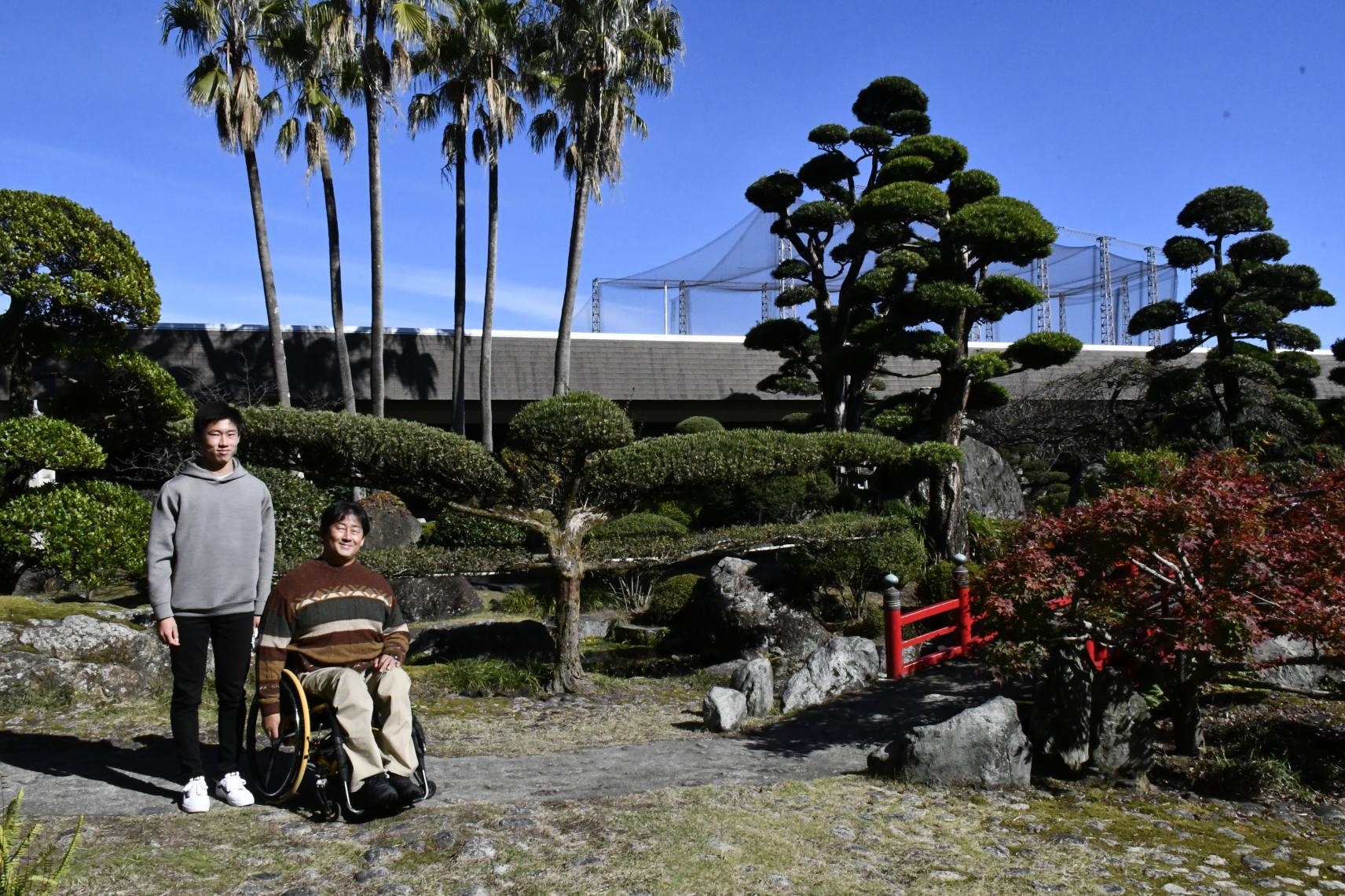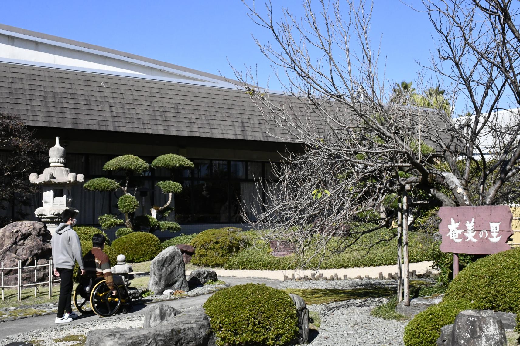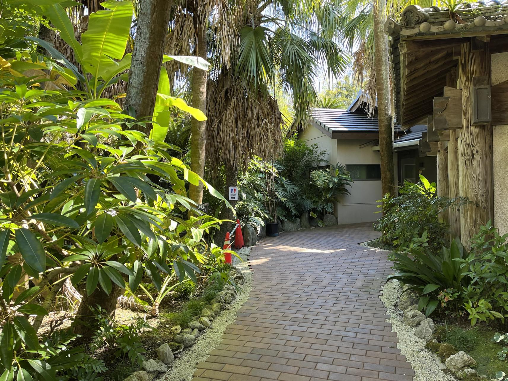 奄美の風を感じながら庭園を散策。バリアフリーに配慮された庭園とあって舗装された通路は段差が少なく、傾斜がある一部の通路のみ息子さんに車いすを押してもらい、スムーズに移動できました。鯉やカモが泳ぐ池を見ながら、のんびりとした心安らぐひと時でした。春から秋にかけては、お花が美しく咲き誇るそう。季節ごとに楽しめますね。