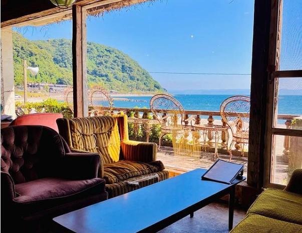 海沿いはガラス張りになっていて、桜島&錦江湾が一望できる絶景ビューポイントです。天気がよければテラス席もあります。もしかすると錦江湾のイルカにも会えるかも!?