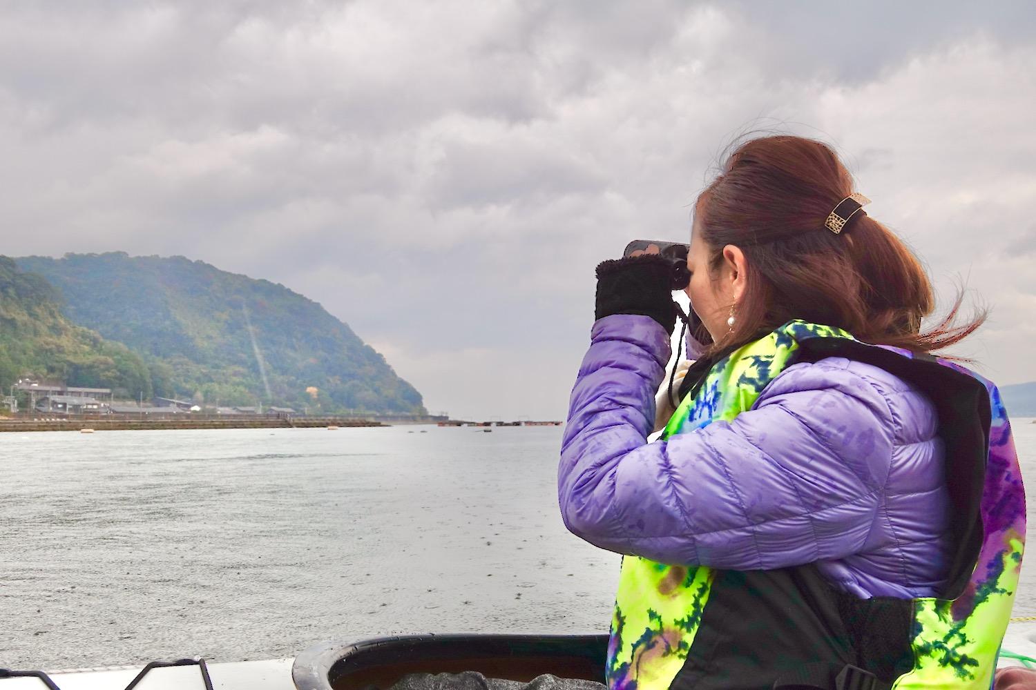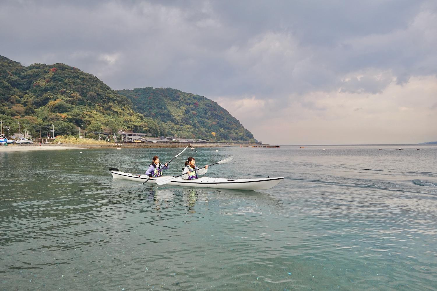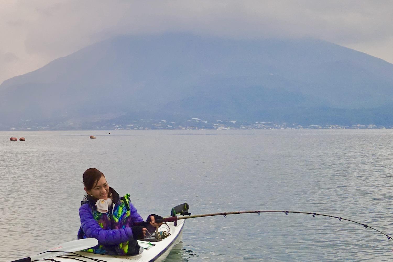 カヤックの楽しみ方は「漕ぐだけ」じゃありません。今回安部さんが教えてくれたのは、「箱メガネ」「バードウォッチング」「釣り」の三種類。箱メガネは先端を海の中に沈めて上から覗きます。錦江湾の水は意外なほど透明で、海の中の様子をくっきり観察できますよ! また錦江湾のまわりにはトビやミサゴ、ハヤブサなどの猛禽類や水鳥などが住んでいるので、バードウォッチングも見応えたっぷり。釣りの方はというと、アジやキビナゴといった小魚だけでなく、場所によっては鯛やカンパチも釣れるのだとか。これらのアクティビティはツアーに含めてもらうこともできるので、カヤックに慣れたらぜひ挑戦してみたいですね!