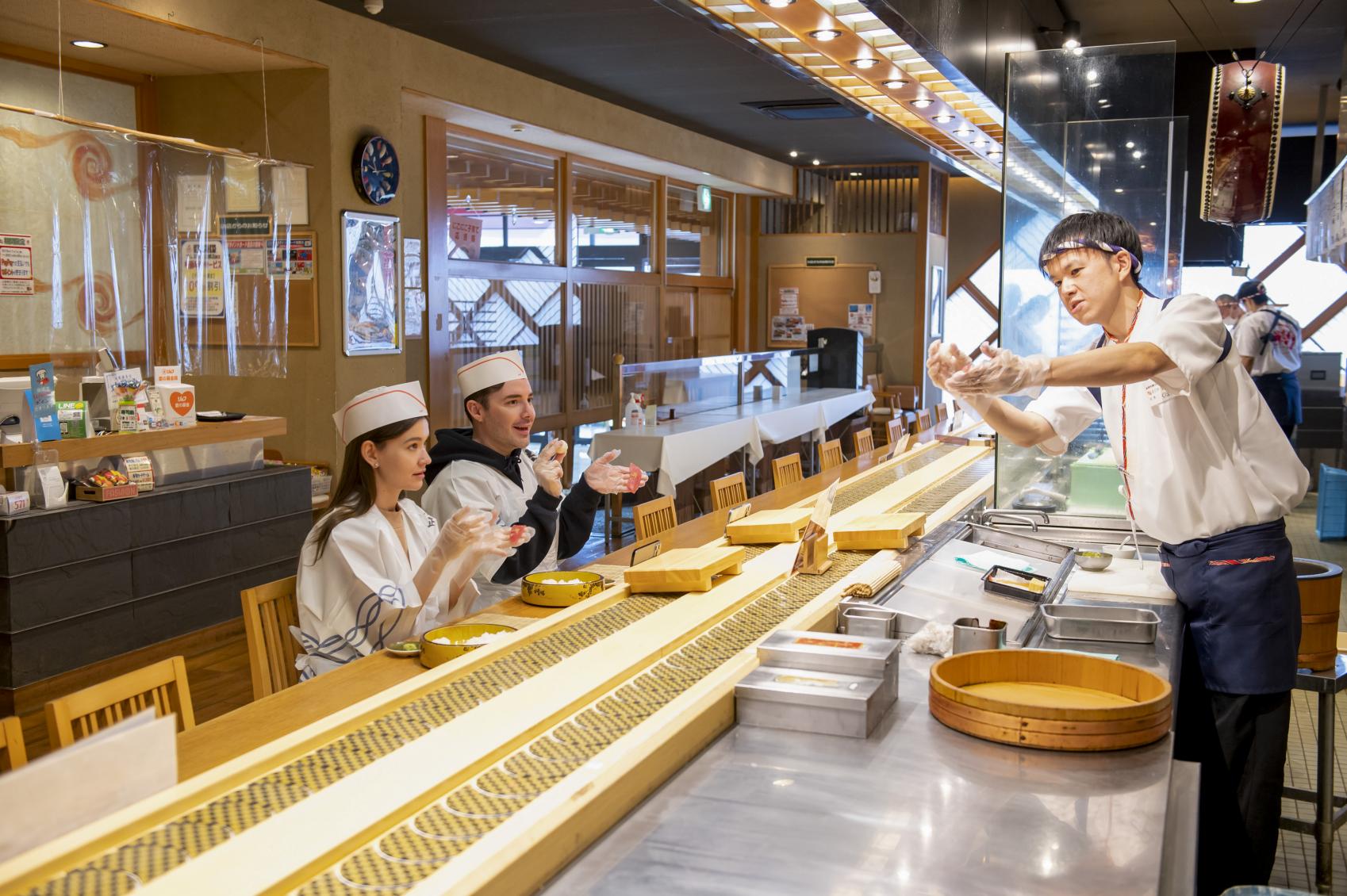 「自身の住む地域の食材を使って、自宅で気軽に寿司づくりを楽しんでもらいたい」。そんな鹿児島の寿司職人たちの想いから生まれた体験です。魚の捌き方を見学したり、寿司の握り方・巻き方を学んだり。自分で作った寿司はその場で実食。体験終了後は、寿司学校修了証書が授与されます。