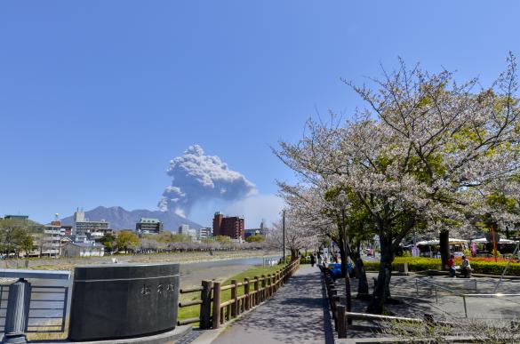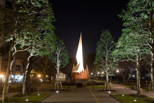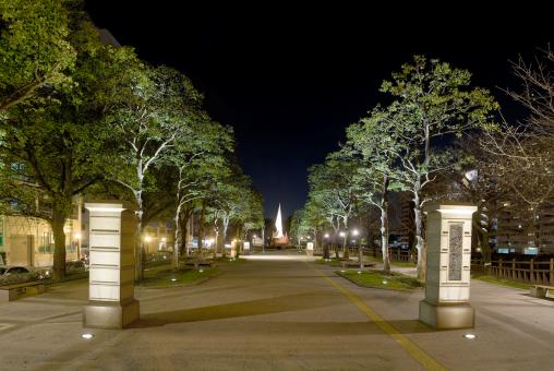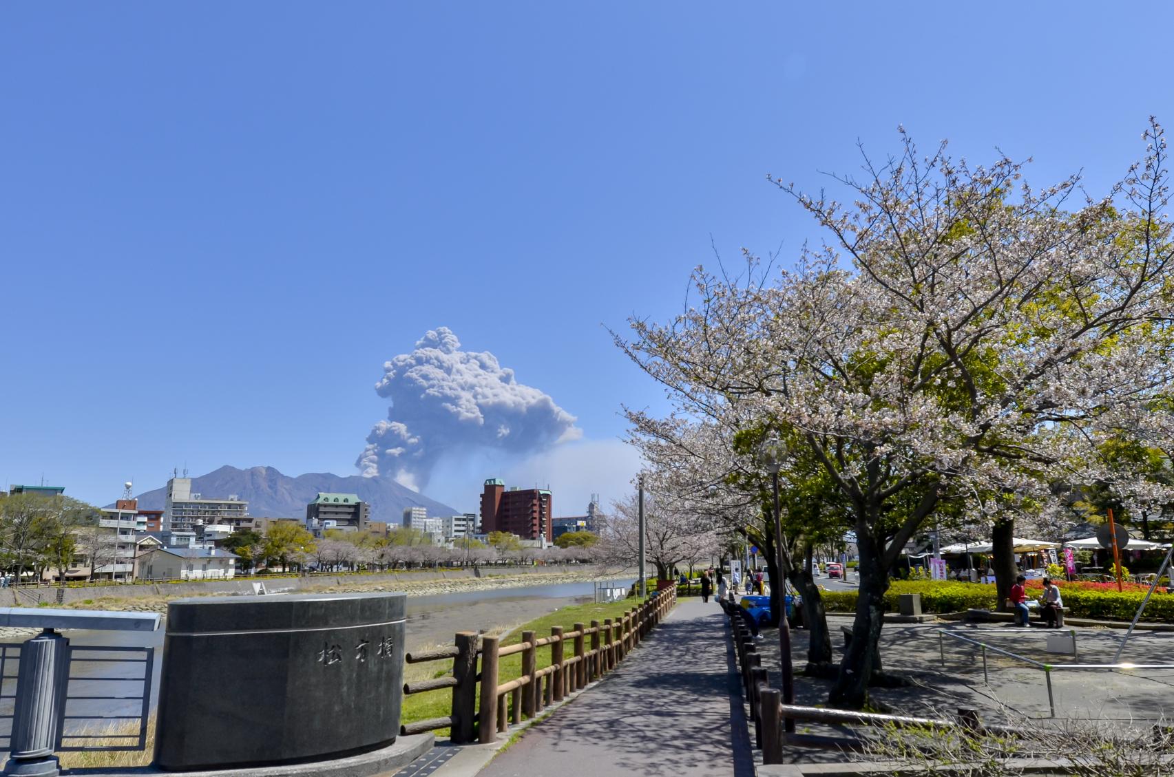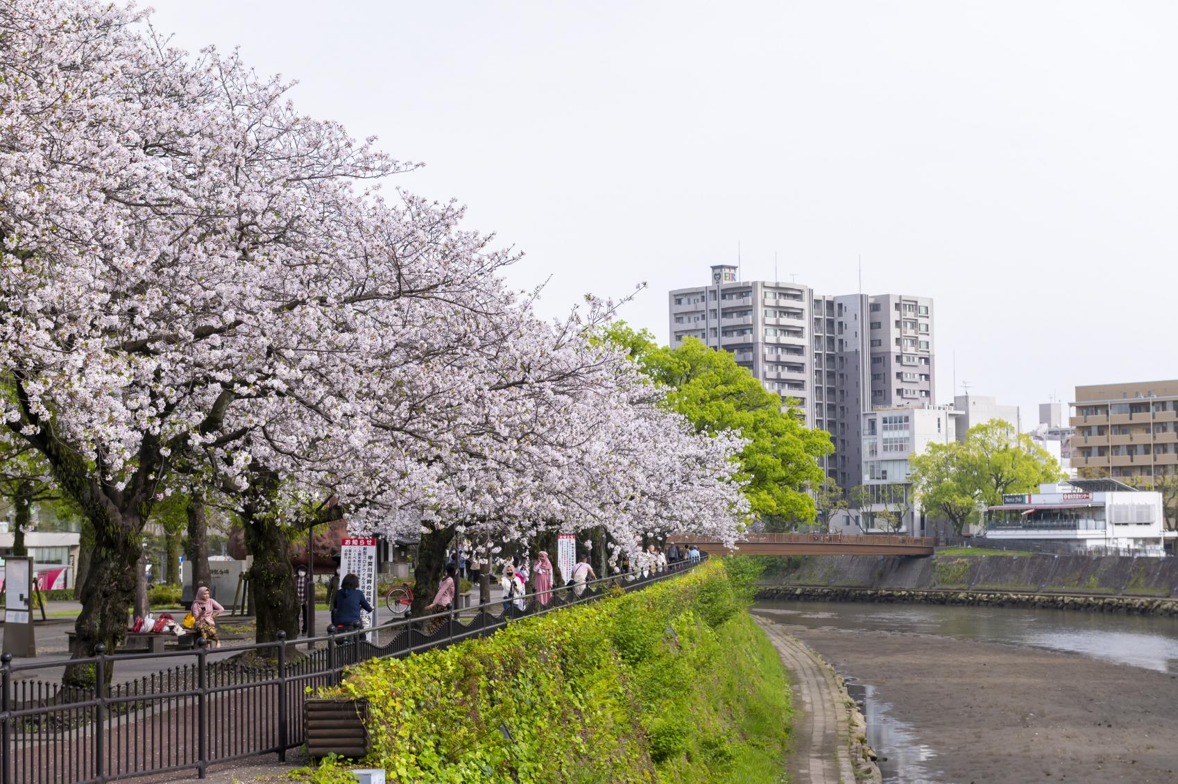 甲突川沿いは、春には桜が咲き誇り、ライトアップも行われます。