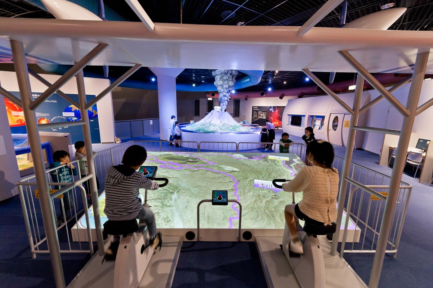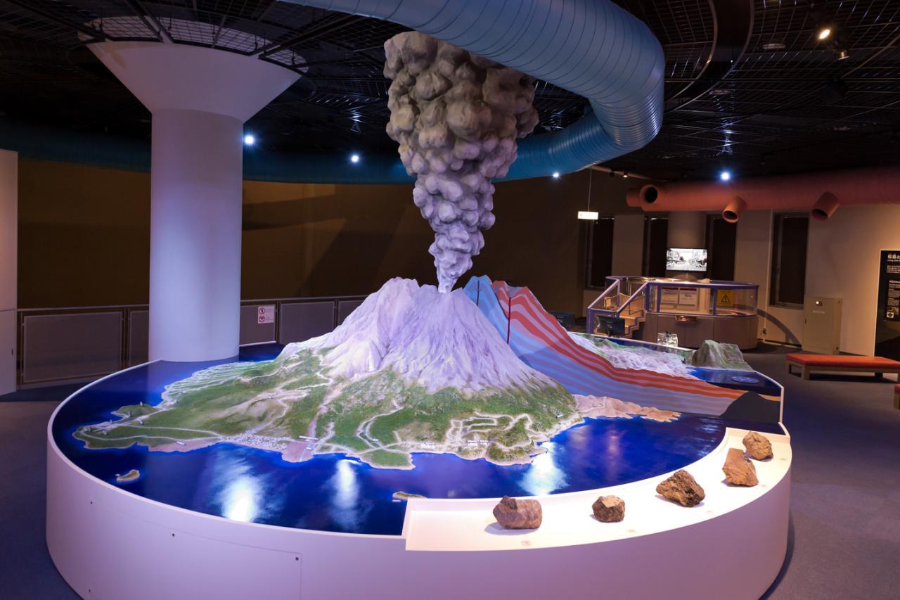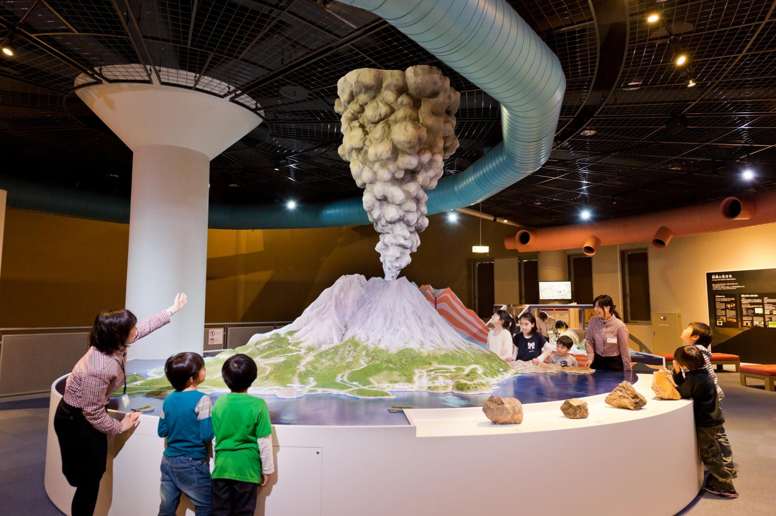 巨大な桜島模型や桜島上空を疑似飛行して火口の様子を観察できる装置などを設置し、鹿児島の自然などを題材に地球の構造や活動について学べる展示物が充実しています。