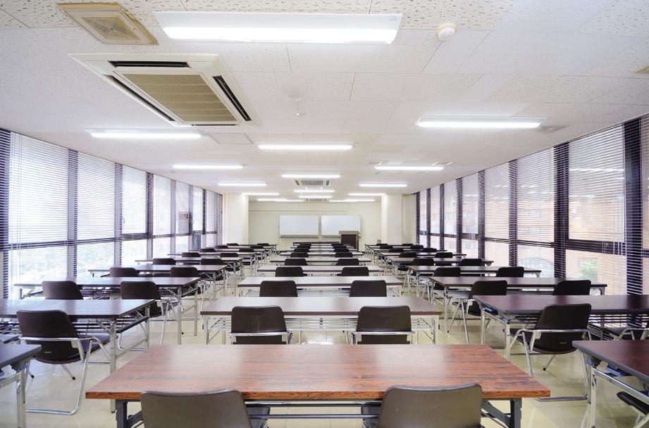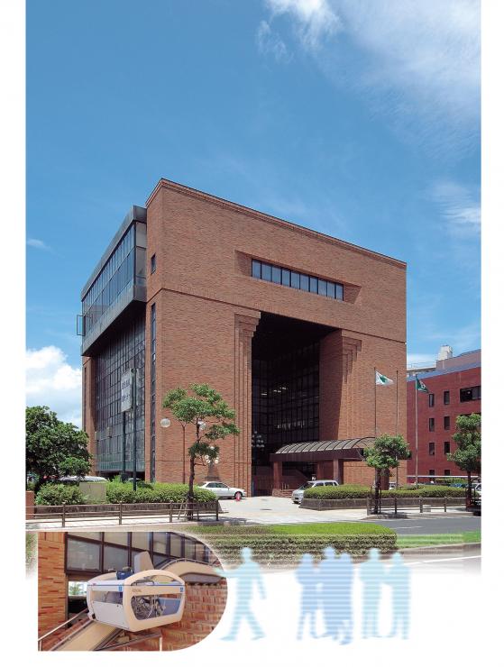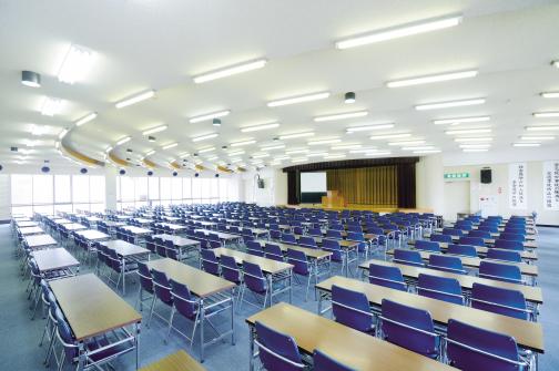 鹿児島県建設センターはシックなブラウンで統一された鴨池ニュータウンの中心部に位置する、大きな吹き抜けのあるモダンな建物です。6階大ホールは机いす席で330人収容できます。天文館より車で約15分という距離にあります。