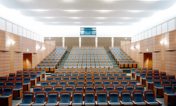 300席の固定席を持つ4・5階吹き抜けのスロープ式ホールで、音響、照明、スクリーンなどの舞台機構を備え、講演会や発表会、ミニコンサートに手ごろな規模となっております。ピアノはスタインウェイをご利用できます。