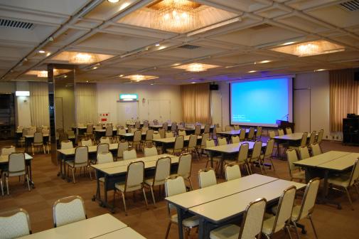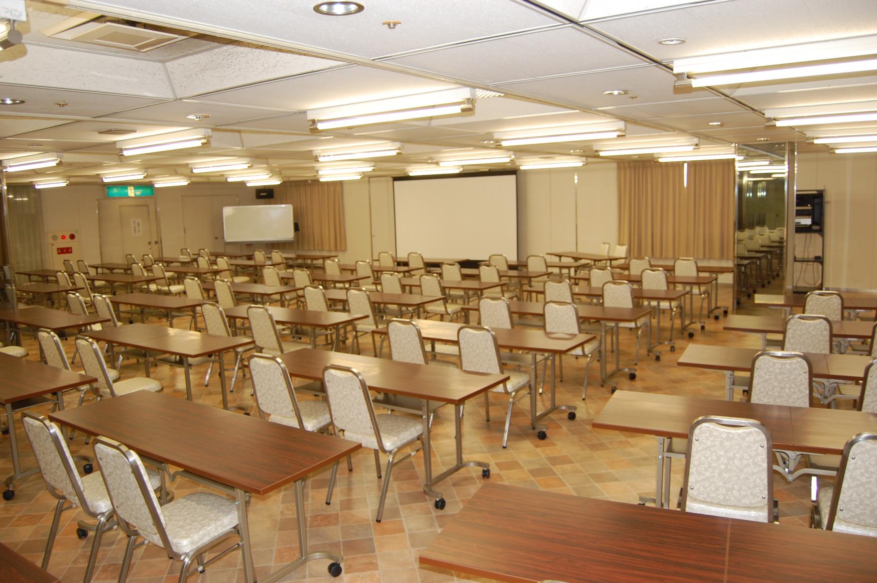 全室Wi-Fi対応、休憩室、喫煙室を完備しています。最大100名まで収容可能な、用途に合わせた会議室と、最大250名まで可能な貸ホールをご用意しております。