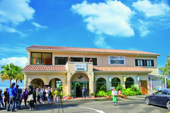 錦江湾国立公園を見晴らす大隅半島の丘の上にあり、朝摘みハーブティー、薬膳ハーブカレー、デザートが楽しめます。隣接する南風ガーデンでは全国ハーブサミットの会場になった本格的ハーブ苑、ボンタン園もあります。