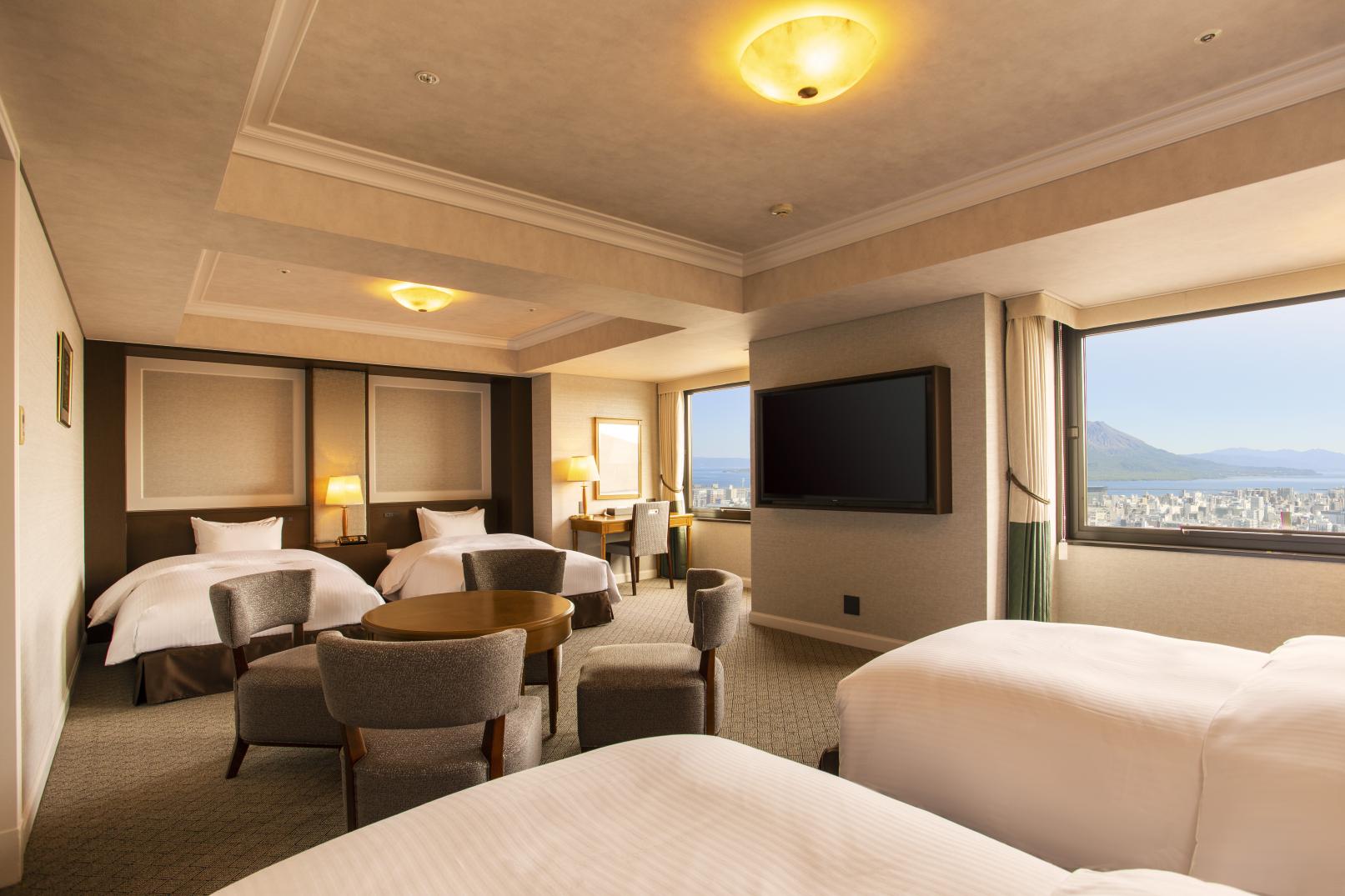 The Shiroyama Hotel Kagoshima sits atop the verdant Shiroyama hill. Serving as Kagoshima's most prestigious official accommodation, the hotel is equipped with superbly comfortable guest rooms. The outdoor Satsumanoyu hot spring affords spectacular views of the imposing Sakurajima and Kagoshima city.