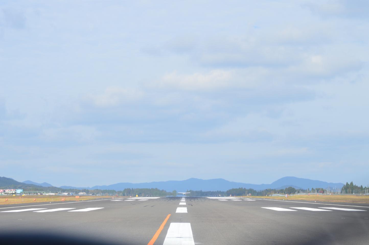 After takeoff, the plane quickly gains altitude and takes to the sky. You can overlook the tea fields and mountains of Kirishima.