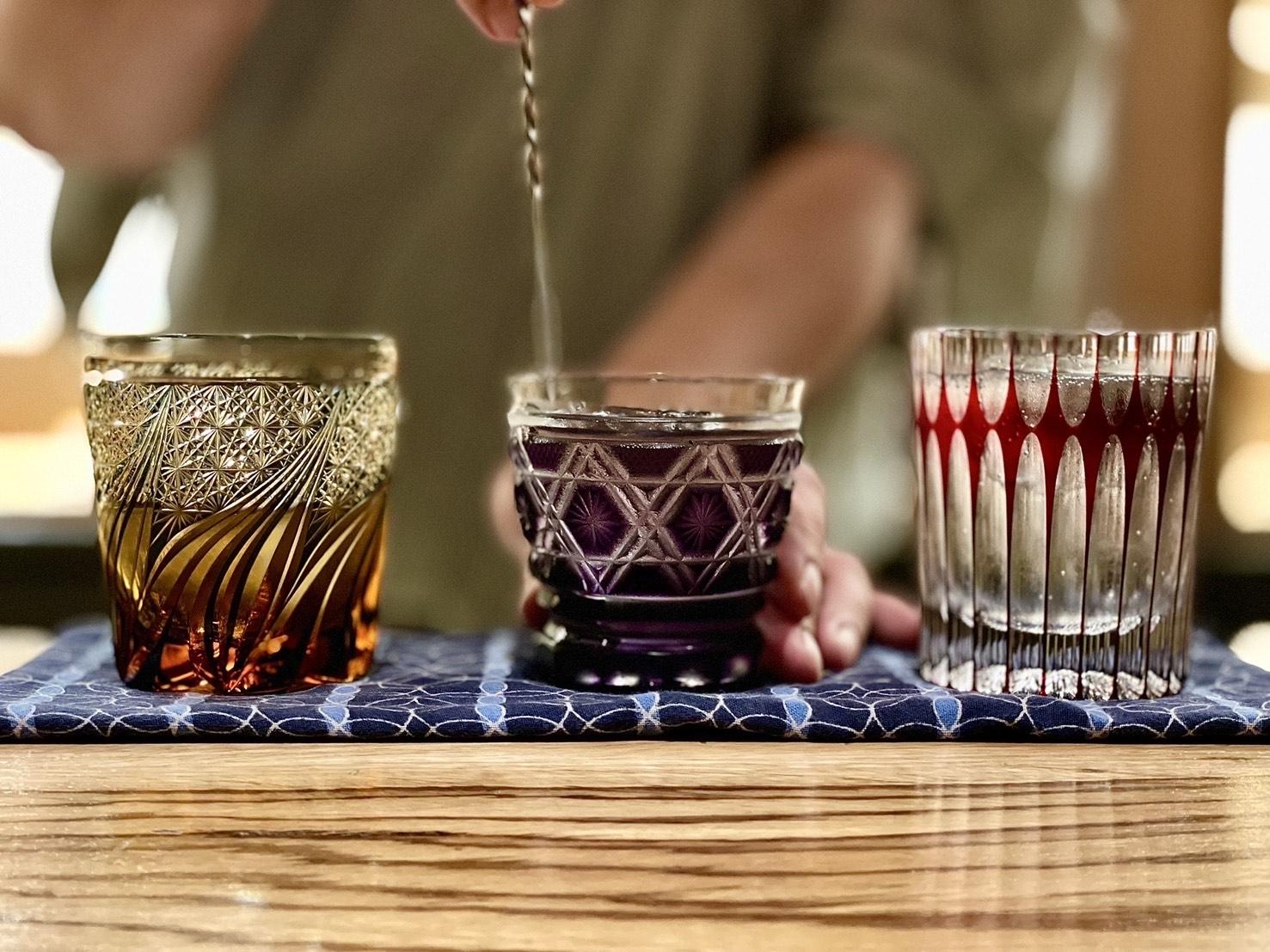 Kiriko refers to glassware adorned with intricate cut patterns. While Edo Kiriko was born in Edo (present-day Tokyo), Satsuma Kiriko has its roots in Satsuma (present-day Kagoshima). What sets this style apart is the stunning gradient effect created by layering colored glass over clear glass. The solid, weighty craftsmanship radiates a mesmerizing glow when light hits it.