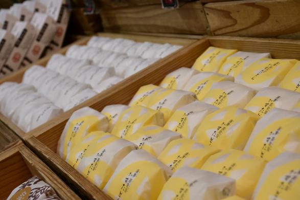 On the arcade street near the Tenmonkan tram stop, Kakashi Yokocho deals in sweets and Yakusughi wooden products. They have great selection of sweets : Kagoshima specialties Karukan (Kyushu confectionery) and Kasutadon, Western sweets such as Yakidonatsu (baked donuts) and cakes and Japanese snacks.Yakidonatsu is now popular among Japanese and foreign tourists as a healthy oil free food. At the eating area on the fisrt floor with a quiet waterfall, you can enjoy freshly baked Yakidonatsu. Teahouse Kakashi,on the second floor, offers Kasutadon parfait and Shirokuma shaved ice. Yaneura Gallery exhibits calligraphy, brushwork paintings and folk handcraft articles.