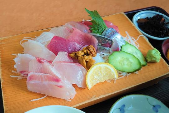A longstanding eatery in the market serving up fresh Kagoshima seafood dishes. The menu of set meals is a long one and enough to tempt the wisest fisherman. Highly popular here are the soused mackerel and sashimi set featuring recommended fish of the day.