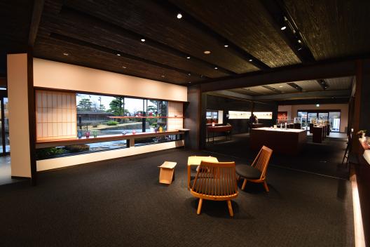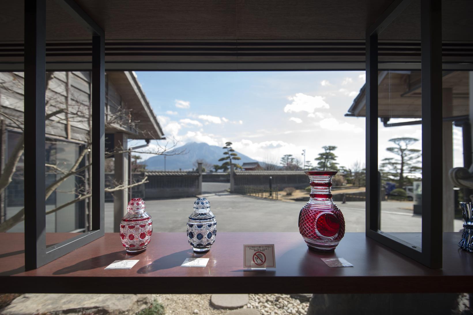The shop in Sengan-en sells Kagoshima traditional crafts such as Satsuma Kiriko cut glass, Satsuma pottery and yakusugi wooden products. You will discover the traditional beauty of Kagoshima in the black-themed shop with a great view of Kinko Bay and Sakurajima.