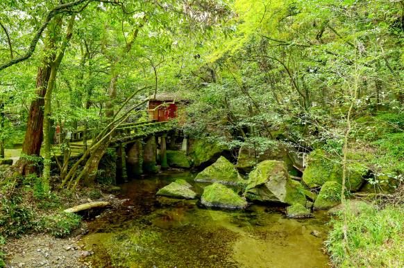 This large park is on the premises of the former Jigenji Temple built around 1400 years ago. The temple was torn down in 1869. The natural environment and a clear stream has been preserved in the area. There is a mystic atmosphere around its trail.