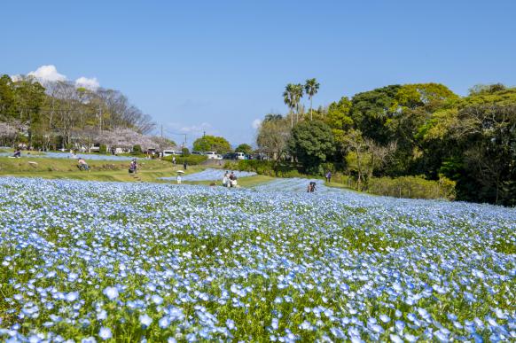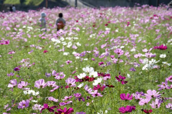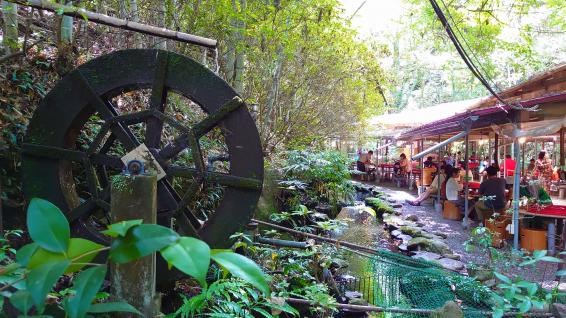 A popular activity is picking cold somen noodles from a “somen nagashi” dish, a special device that spins noodles in water. In summer many visitors including families visit here. The best season is from the middle of March to the end of October. Rape-flowers and cosmos grow in the large park that is also known for cherry blossoms in spring.