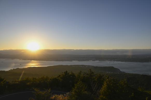 From the observatory you can see the mirror-like surface of tranquil Kinko Bay and the urban district of Kagoshima City below. You can also see the Kirishima mountain chain in the north and beautiful Mount Kaimon in the south.