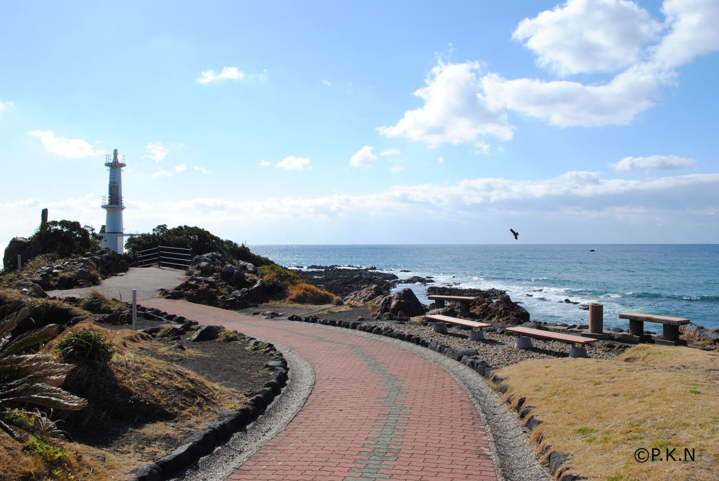 This is the southernmost cape of the Satsuma Peninsula. The view of Mount Kaimon across the sea is beautiful, and on a clear day you can even see Yakushima and Iwo Jima.