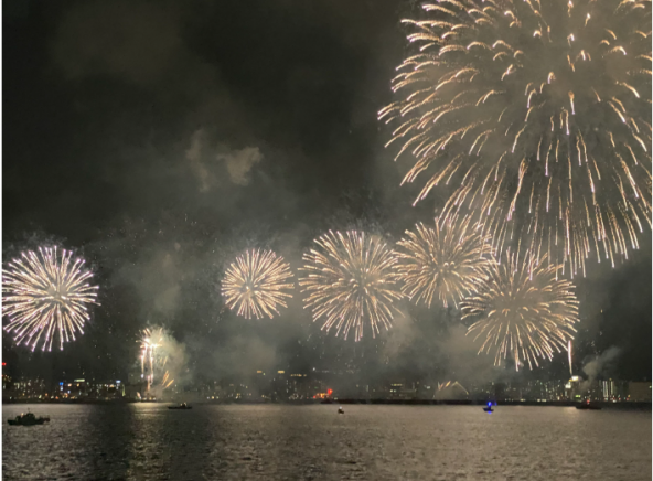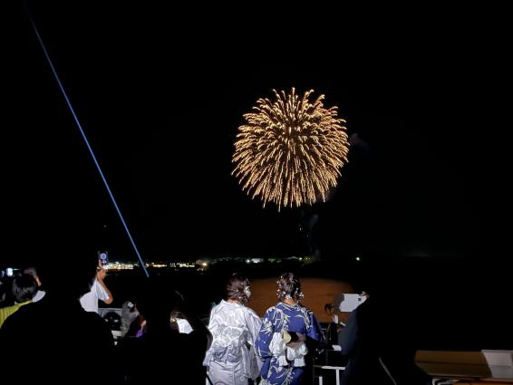 市街地の夕焼けや夜景を眺めながら、花火や食事を楽しむクルーズ