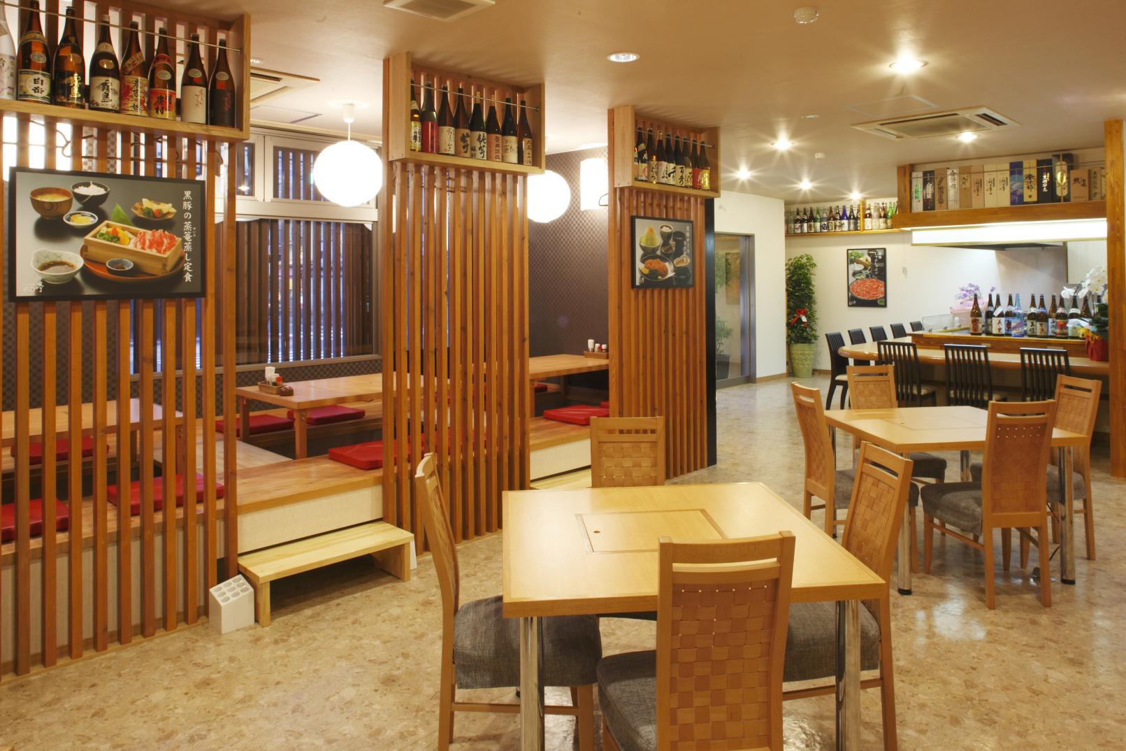 厳選した鹿児島県産の六白黒豚を特製出汁で頂く「黒豚しゃぶしゃぶ」や手元の見えるオープンキッチンでオーダーごとに切り出す「黒豚厚切りとんかつ」が一番人気の六白亭です。また、鹿児島県産の玄米を店内で毎日精米したてのお米のかまどご飯を提供しています。そのほか、薩摩郷土料理のきびなご、さつま揚げなども取り揃えています。店内には焼酎アドバイザーが厳選した鹿児島県内の400種を超える焼酎をご用意しています。