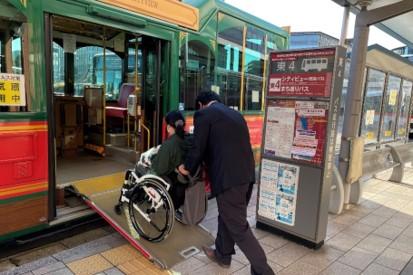 カゴシマシティビューは、全車スロープ付きで、車椅子でも乗車可能です!