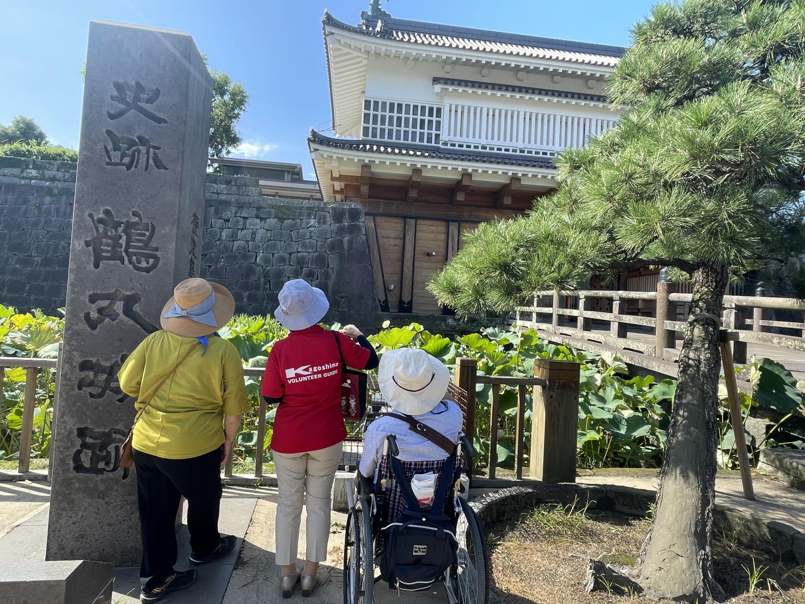 写真は、鹿児島まち歩き観光ステーション~照国神社前~鶴丸城御楼門(所要時間:60分)の様子です。