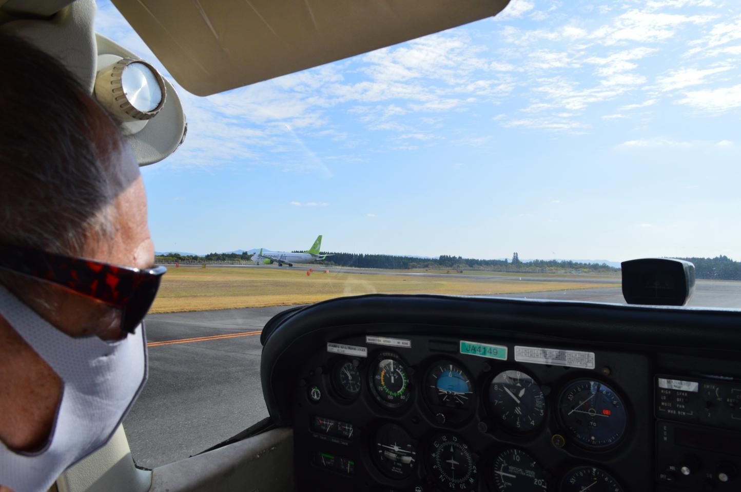 커다란 여객기에 섞여 아담한 세스나도 활주로로. 기장과 관제관이 주고받는 소리를 바로 옆에서 들을 수 있는 것도 소형기만의 묘미.