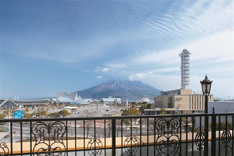 장대한 사쿠라지마를 조망할 수 있는 숙박시설