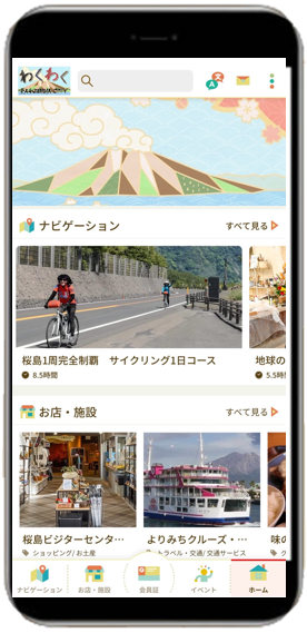 가고시마시의 추천 명소와 알뜰 정보를 제공하는 가고시마 fun×fan 앱.
