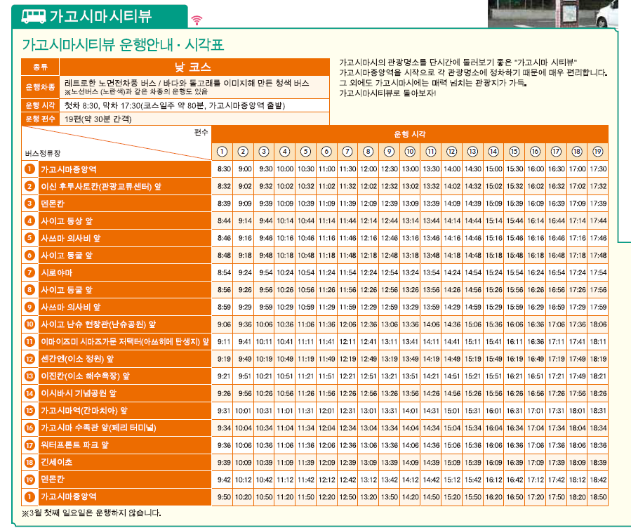 자유롭게 타고 내릴 수 있는 관광버스 “가고시마 시티 뷰”를 타고 인기 명소를 짧은 시간에 돌아보세요