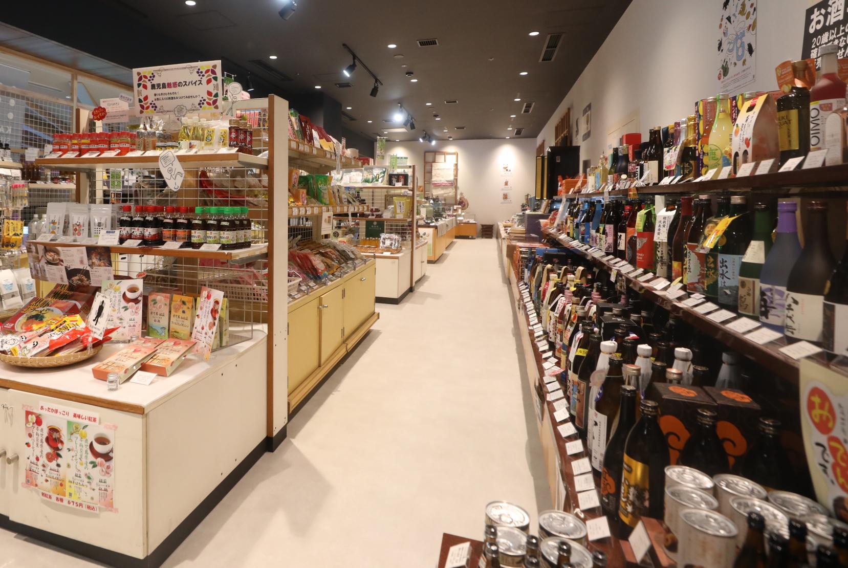소주, 전통 튀김 어묵, 향토 과자를 비롯해 전통 도자기, 유리 공예품, 본고장 전통 직물 같은 대표 상품은 물론, 새롭게 개발된 특산품이나 화제가 되는 상품도 구입할 수 있습니다.