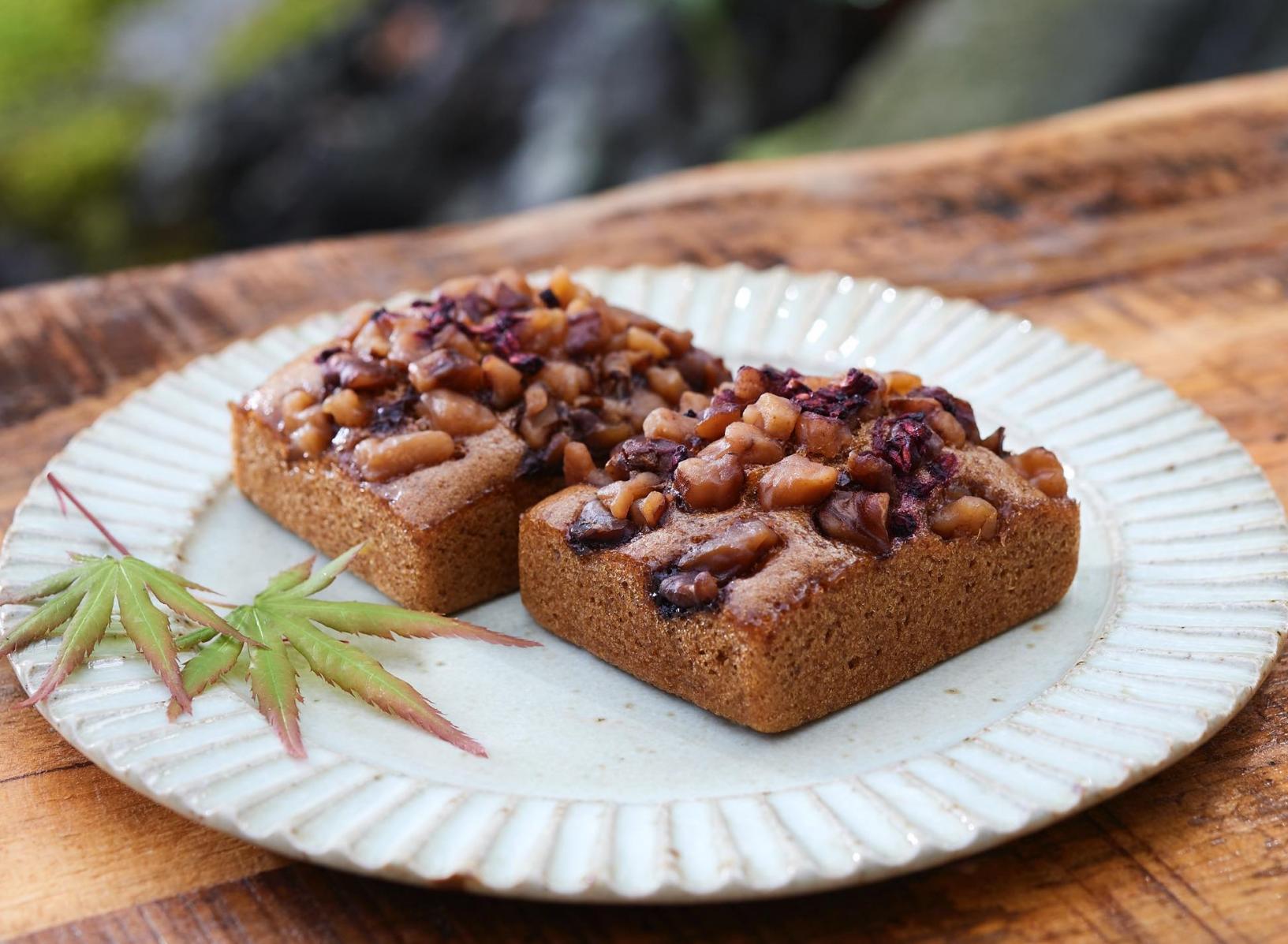 쌀가루, 참마, 흑설탕을 사용한 반죽에 호두의 식감과 라즈베리의 산미가 어우러진 독특한 풍미를 제공합니다.