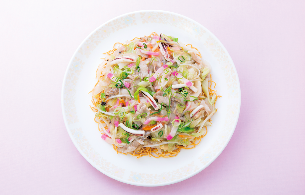 가고시마시의 유서 깊은 백화점에 있는 야마가타야 식당에서 특히 가고시마현민에게 인기 있는 메뉴는 '야키소바'입니다. 소스를 면에 섞어 볶는 일반적인 야키소바와는 다르게 바삭한 면 위에 녹말소스 수프와 고기, 채소를 올립니다. 특제 식초를 뿌려 맛의 변화를 즐기는 것도 추천합니다.