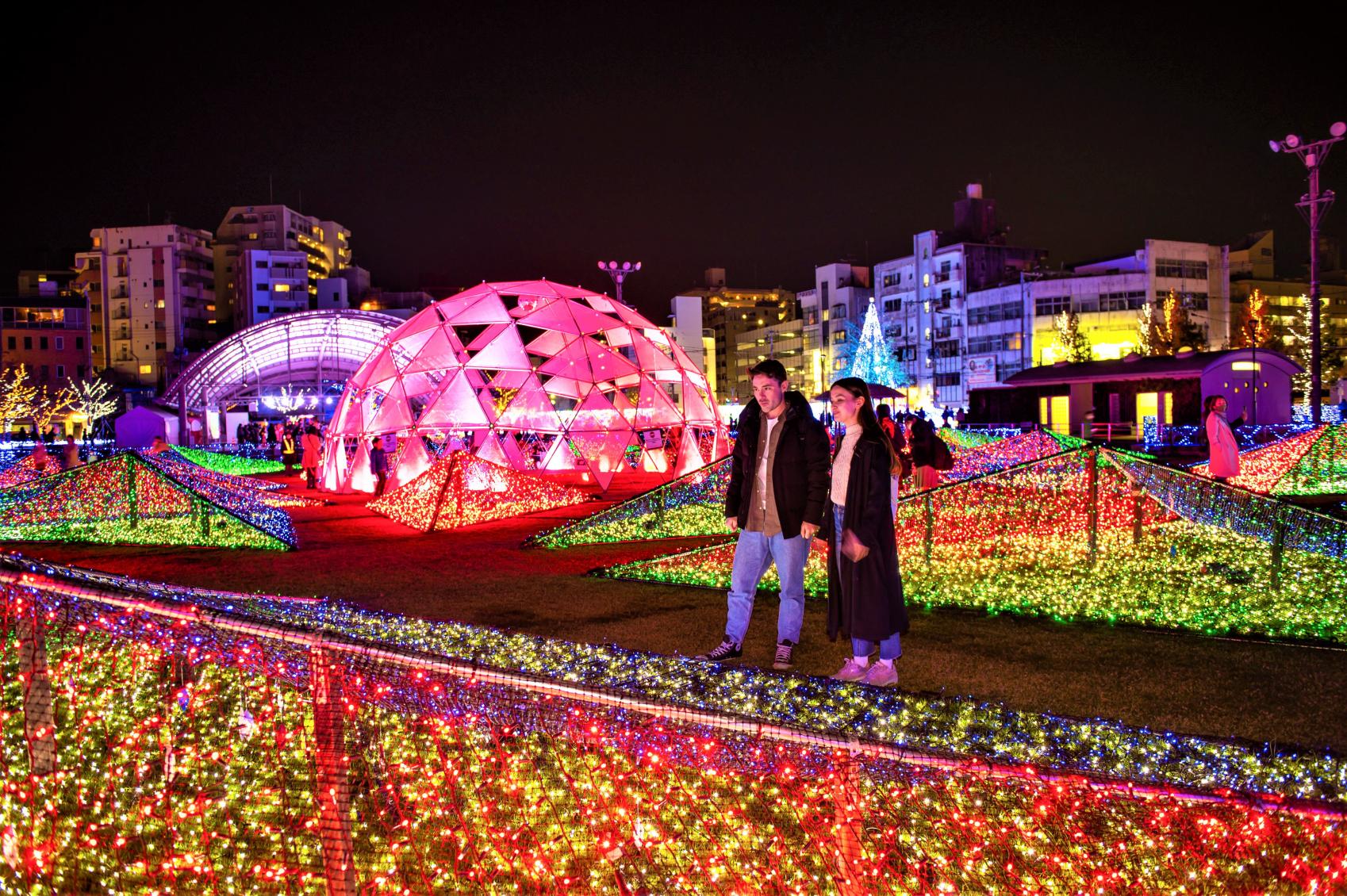 일년 내내 매력이 넘치는 가고시마입니다만, 계절별 이벤트 시기에 맞춰 방문해 보는 것도 추천합니다. 번화가 ‘덴몬칸’ 지역에서는, 매년 11월에 약 2만명이 향토 민요에 맞춰 춤을 추는 압권의 ‘오하라 마쓰리’와 현내 113개 주조장의 소주가 한자리에 모여 진지한 자세로 소주를 즐기는 3일간의 ‘소주 스트리트’가, 12월∼1월에는 덴몬칸 공원이 라이트업으로 로맨틱한 분위기를 연출하는 ‘덴몬칸 일루미네이션’이 개최됩니다.