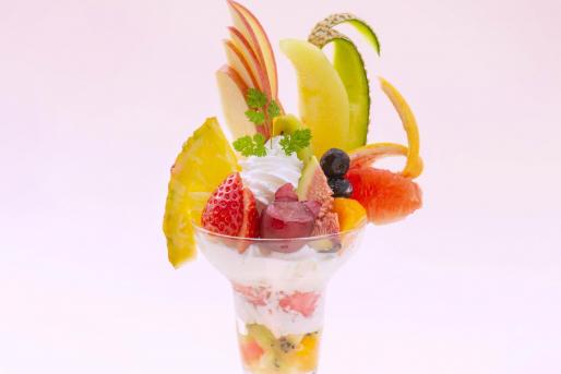 제철 과일을 듬뿍 사용한 파르페가 큰 인기. 가고시마현산 과일도 사용하며 과일 샌드위치, 스무디 등의 메뉴도 있습니다.